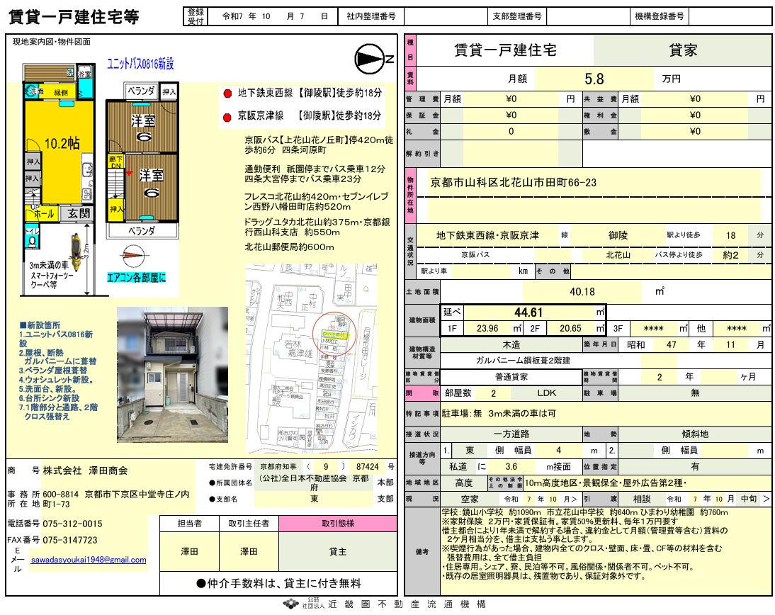 貸家一戸建て 北花山市田町66-23
